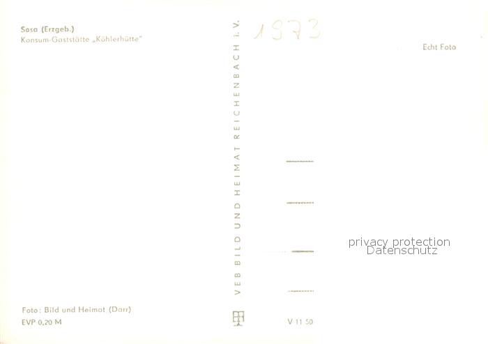 72968749 Sosa Erzgebirge Konsum Gaststaette Koehlerhuette postalisch nicht gelaufen Erhaltung siehe scans [FriedD77] KatCode: 11110014191310