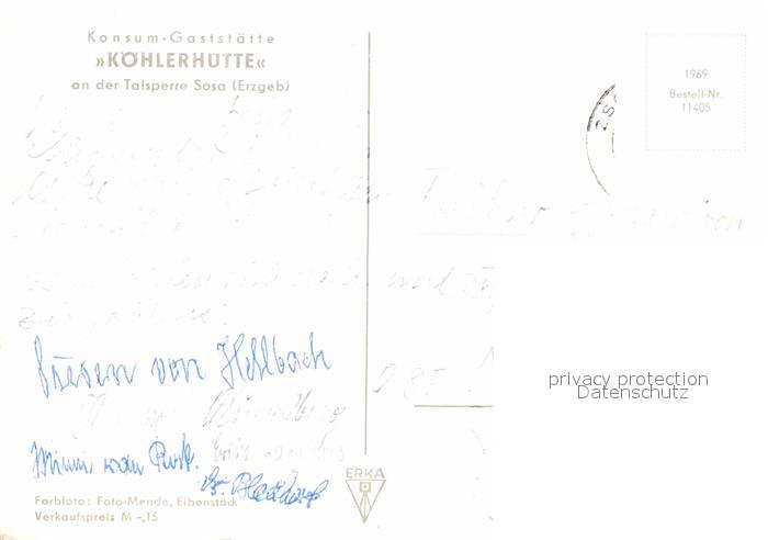 72890525 alte Postkarte Sosa Erzgebirge Konsum Gaststaette Koehlerhuette postalisch gelaufen Erhaltung siehe scans [WerneD78] KatCode: 11110014191310