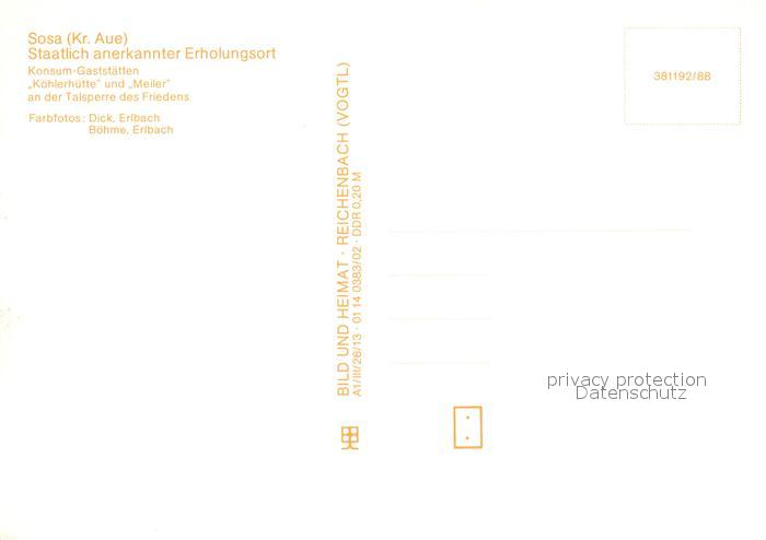 73570060 Sosa Erzgebirge Konsum Gaststaette Koehlerhuette und Meiler an Talsperre des Friedens postalisch nicht gelaufen Erhaltung siehe scans [FriedD77] KatCode: 11110014191310