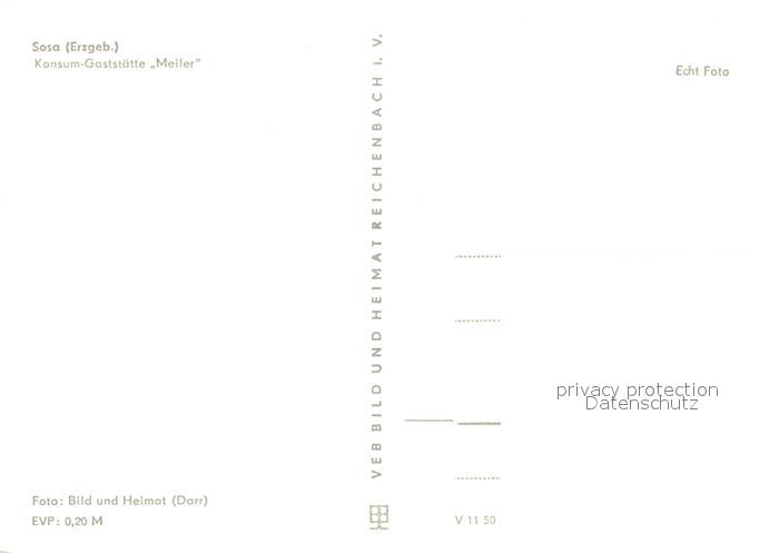 72987212 Sosa Erzgebirge Konsum Gaststaette Meiler postalisch nicht gelaufen Erhaltung siehe scans [WerneD78] KatCode: 11110014191310