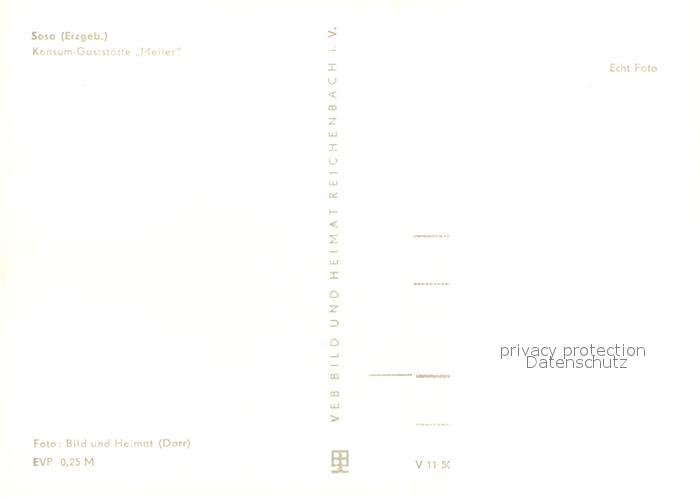 72937640 Sosa Erzgebirge Konsum Gaststaette Meiler postalisch nicht gelaufen Erhaltung siehe scans [NatalD47] KatCode: 11110014191310