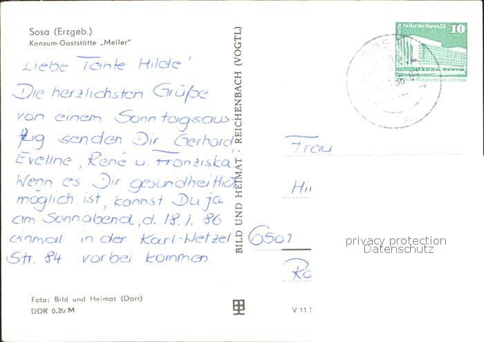 72168802 alte Postkarte Sosa Erzgebirge Konsum Gaststaette Meiler postalisch gelaufen Erhaltung siehe scans KatCode: 11110014191310