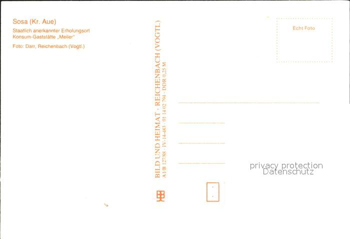 72117551 Sosa Erzgebirge Konsum Gaststaette Meiler postalisch nicht gelaufen KatCode: 11110014191310