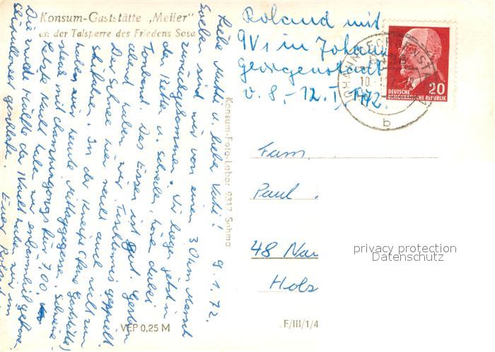 73724356 alte Postkarte Sosa Erzgebirge Konsum-Gaststaette Meiler postalisch gelaufen Erhaltung siehe scans [LiesaD40] KatCode: 11110014191310