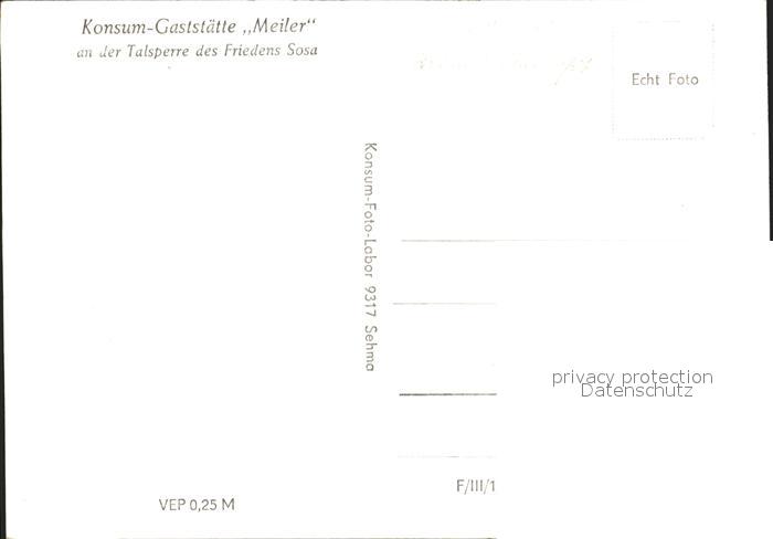 72344338 Sosa Erzgebirge Konsum Gaststaette Meiler an der Talsperre des Friedens postalisch nicht gelaufen Erhaltung siehe scans KatCode: 11110014191310