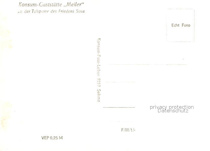 72964515 Sosa Erzgebirge Konsum Gaststaette Meiler Talsperre des Friedens postalisch nicht gelaufen Erhaltung siehe scans [FriedD77] KatCode: 11110014191310