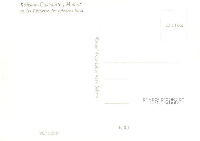 72964514 Sosa Erzgebirge Konsum Gaststaette Meiler Talsperre des Friedens postalisch nicht gelaufen Erhaltung siehe scans [FriedD77] KatCode: 11110014191310