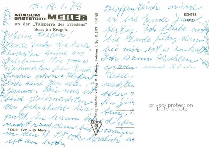 72633100 Sosa Erzgebirge Konsum Gaststaette Meiler Talsperre des Friedens im Winter postalisch nicht gelaufen Erhaltung siehe scans [FriedD77] KatCode: 11110014191310