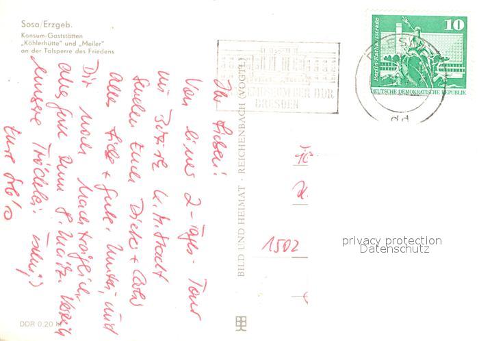72943859 alte Postkarte Sosa Erzgebirge Konsum Gaststaetten Koehlerhuette Meiler postalisch gelaufen Erhaltung siehe scans [KathaD81] KatCode: 11110014191310