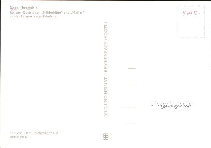 72543188 Sosa Erzgebirge Konsum Gaststaetten Koehlerhuette und Meiler postalisch nicht gelaufen Erhaltung siehe scans [WerneD78 kv016box] KatCode: 11110014191310
