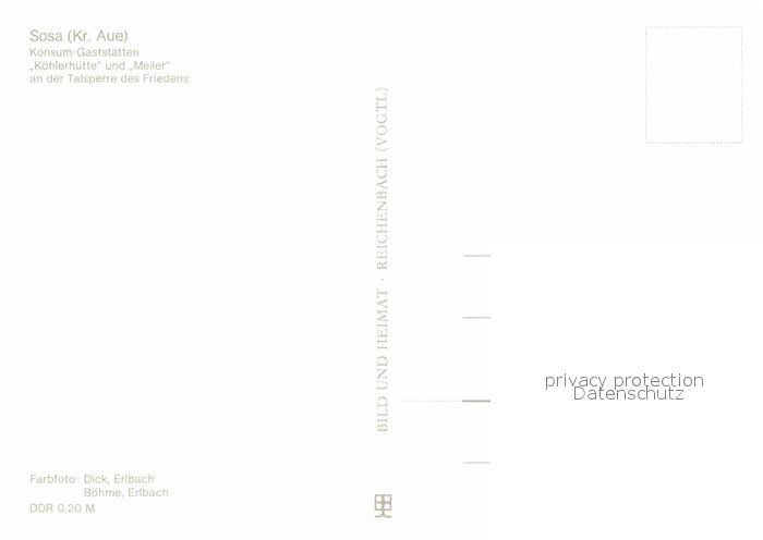 72709913 Sosa Erzgebirge Konsum Gaststaetten Koehlerhuette und Meiler an der Talsperre des Friedens postalisch nicht gelaufen Erhaltung siehe scans [FriedD77] KatCode: 11110014191310