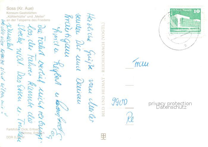 73569733 alte Postkarte Sosa Erzgebirge Konsum-Gastst?tten K?hlerh?tte und Meiler postalisch gelaufen Erhaltung siehe scans [PaolaD17] KatCode: 11110014191310