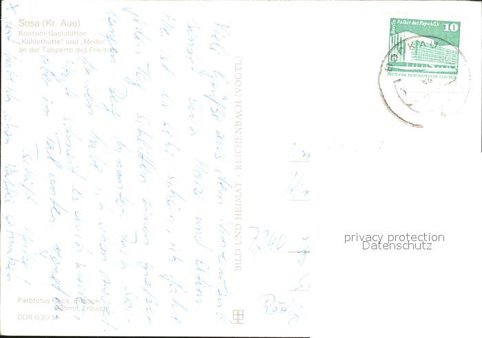 72479582 alte Postkarte Sosa Erzgebirge Konsumgaststaette Koehlerhuette postalisch gelaufen Erhaltung siehe scans KatCode: 11110014191310