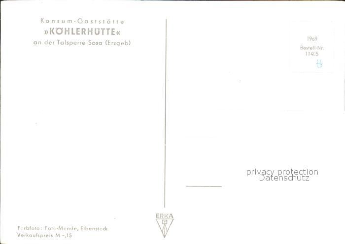 72557365 Sosa Erzgebirge Konsumgaststaette Koehlerhuette postalisch nicht gelaufen Erhaltung siehe scans [KathaD79] KatCode: 11110014191310