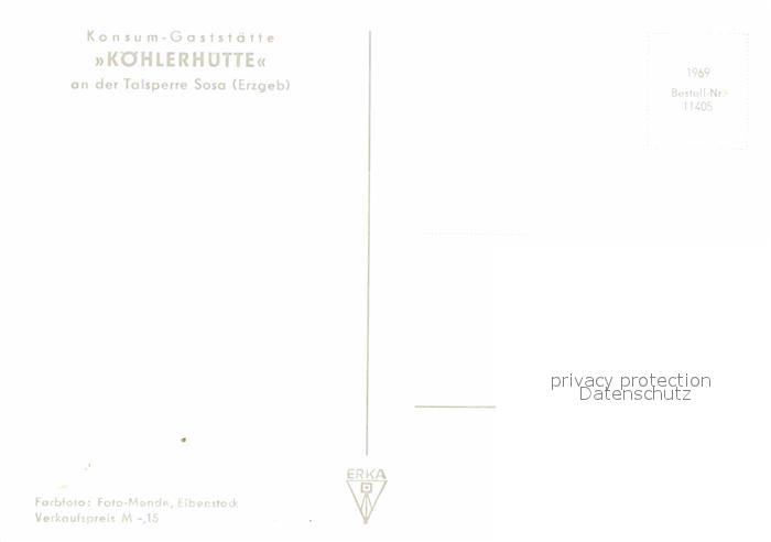 72681449 Sosa Erzgebirge Restaurant Koehlerhuette postalisch nicht gelaufen Erhaltung siehe scans [LiesaD40] KatCode: 11110014191310