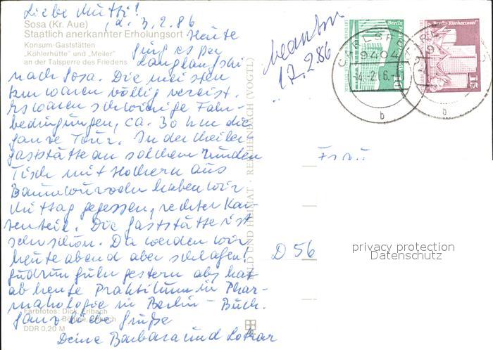 72421085 alte Postkarte Sosa Erzgebirge Restaurant Koehlerhuette und Meiler postalisch gelaufen Erhaltung siehe scans KatCode: 11110014191310