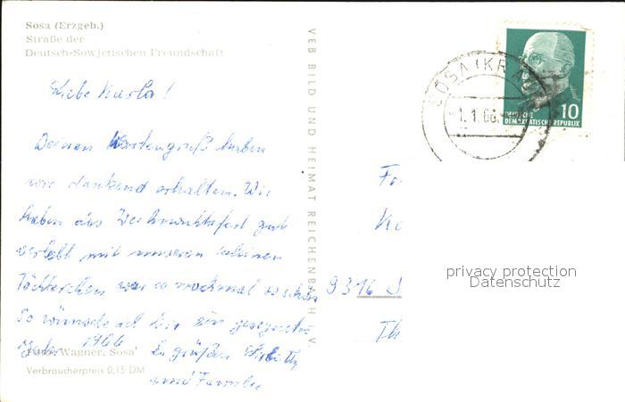 72435515 alte Postkarte Sosa Erzgebirge Strasse der DSF postalisch gelaufen Erhaltung siehe scans KatCode: 11110014191310