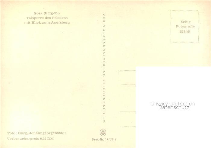73035748 Sosa Erzgebirge Talsperre des Friedens Auersberg postalisch nicht gelaufen Erhaltung siehe scans [KathaD81] KatCode: 11110014191310