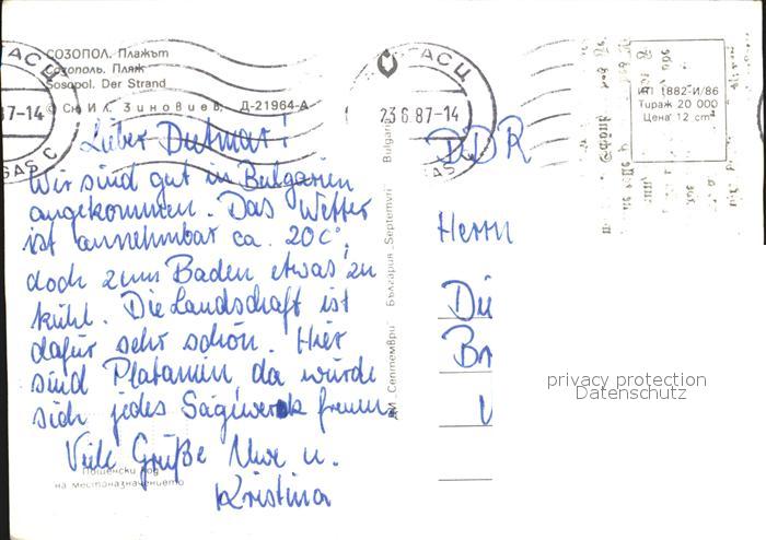 old postcard Sosopol Strand postalisch gelaufen Erhaltung siehe scans
