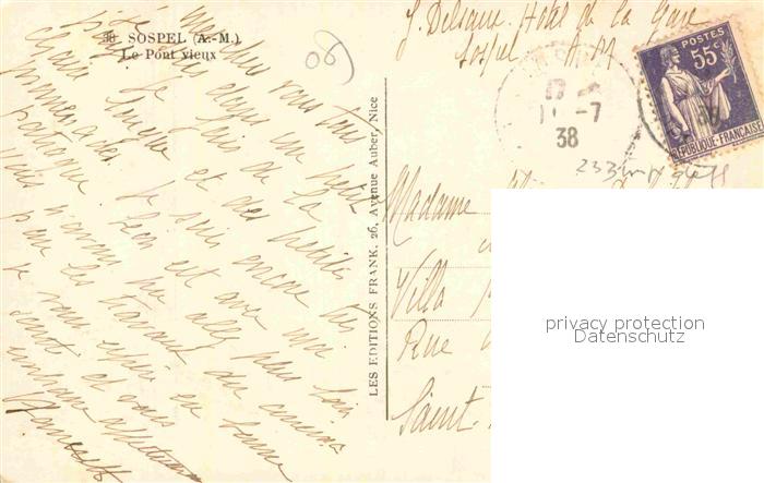 12757265 carte postale Sospel Le Pont vieux postalisch gelaufen Erhaltung siehe scans [FriedD77] KatCode: 11170006206136