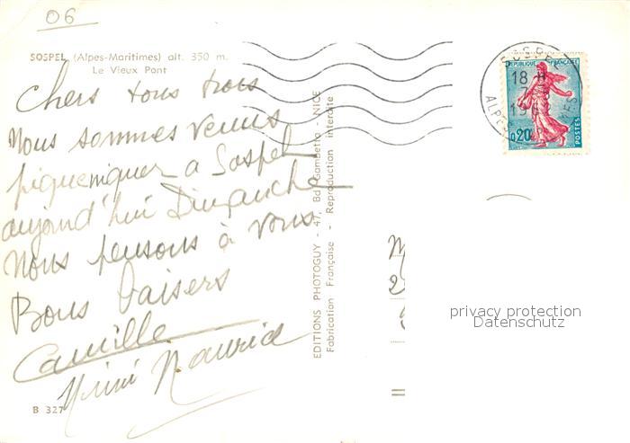 13593929 Sospel Le Vieux Pont postalisch gelaufen Erhaltung siehe scans [WerneD78] carte postale Wern Katcode 11170006206136