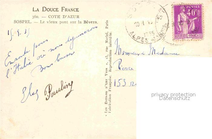 12757197 carte postale Sospel Le vieux Pont sur la Bevera Cote d Azur Collection La Douce France postalisch gelaufen Erhaltung siehe scans [FriedD77] KatCode: 11170006206136