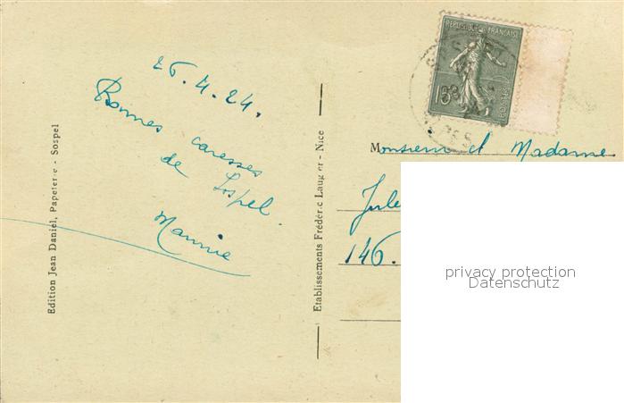13638552 Sospel Place Saint Nicolas postalisch gelaufen Erhaltung siehe scans [FriedD77] carte postale Frie Katcode 11170006206136