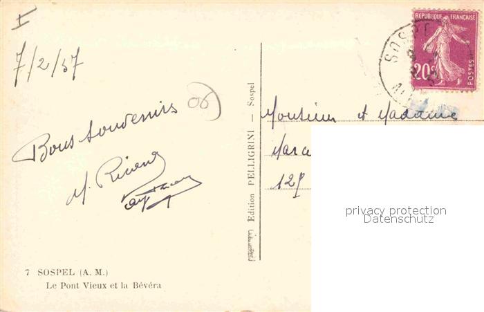 12705855 carte postale Sospel Pont Vieux et la Bevera postalisch gelaufen Erhaltung siehe scans [FriedD77] KatCode: 11170006206136