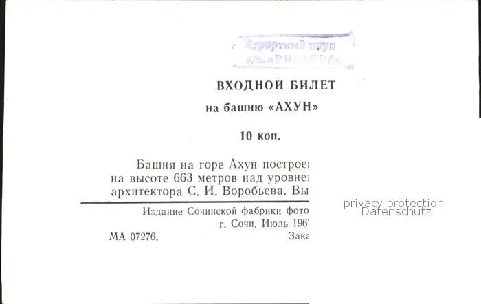Sotschi Achun Turm postalisch nicht gelaufen Keine Postkarte (siehe scan) Erhaltung siehe scans [NatalD47 kv013box]