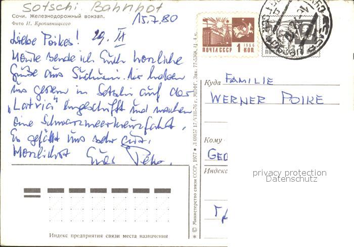 old postcard Sotschi Bahnhof postalisch gelaufen Erhaltung siehe scans