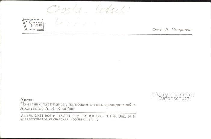 Sotschi Denkmal postalisch nicht gelaufen Erhaltung siehe scans