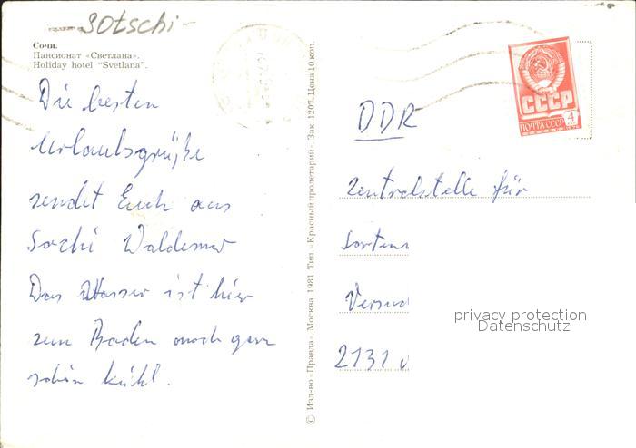 old postcard Sotschi Holiday Hotel Svetlana postalisch gelaufen Erhaltung siehe scans