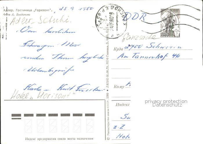 old postcard Sotschi Hotel Adler postalisch gelaufen Erhaltung siehe scans