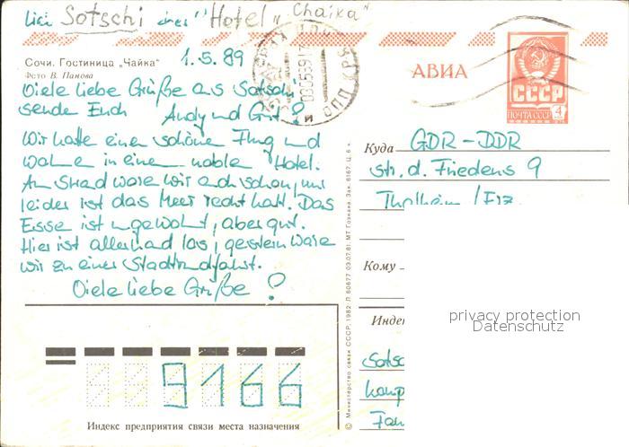 old postcard Sotschi Hotel Chaika postalisch gelaufen Erhaltung siehe scans