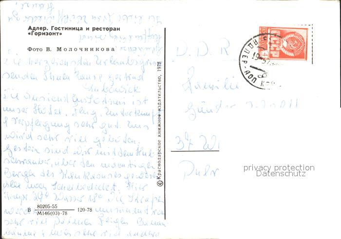 old postcard Sotschi Hotel Horisont postalisch gelaufen Erhaltung siehe scans
