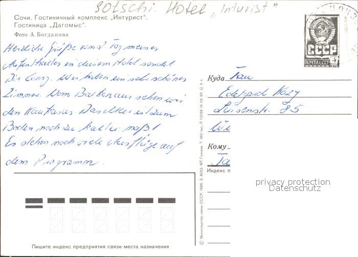 old postcard Sotschi Hotel Inturist postalisch gelaufen Erhaltung siehe scans
