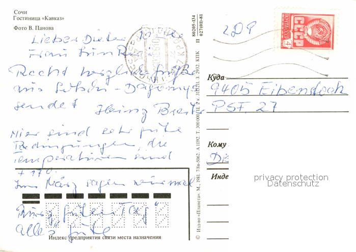 old postcard Sotschi Hotel Kawkaz postalisch gelaufen Erhaltung siehe scans [NatalD47]