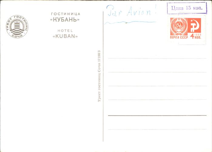 Sotschi Hotel Kuban postalisch nicht gelaufen Erhaltung siehe scans