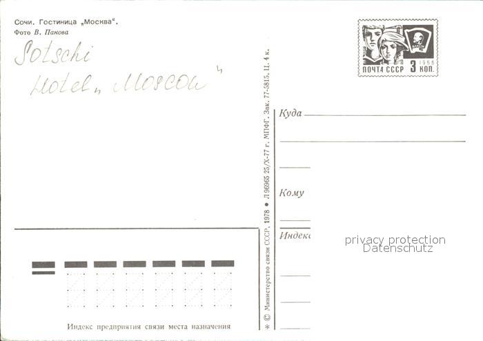 Sotschi Hotel Moscou postalisch nicht gelaufen Erhaltung siehe scans
