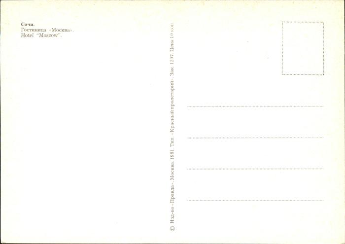Sotschi Hotel Moscow postalisch nicht gelaufen Erhaltung siehe scans