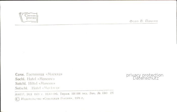 Sotschi Hotel Moskau postalisch nicht gelaufen Erhaltung siehe scans