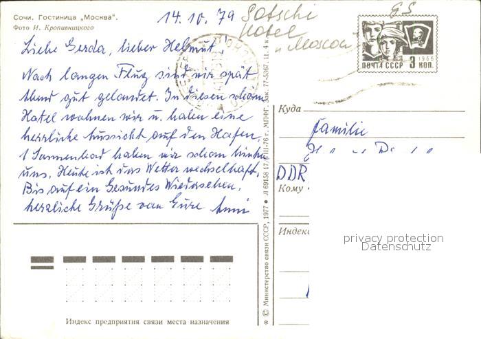 old postcard Sotschi Hotel Moskau postalisch gelaufen Ganzsache (eingedruckte Briefmarke) Erhaltung siehe scans