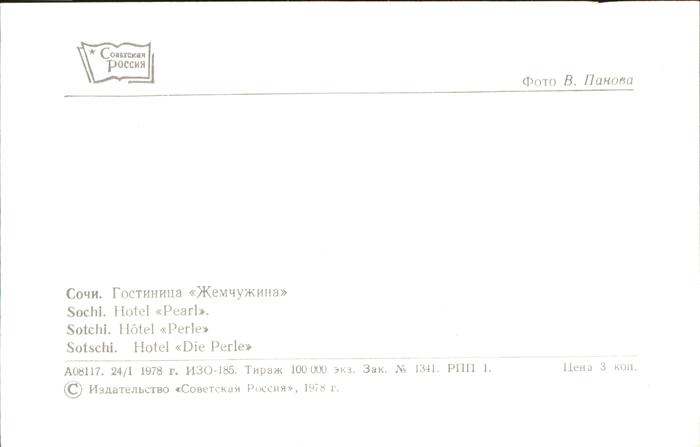 Sotschi Hotel Pearl Strand postalisch nicht gelaufen