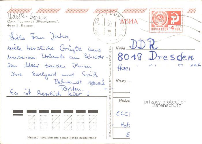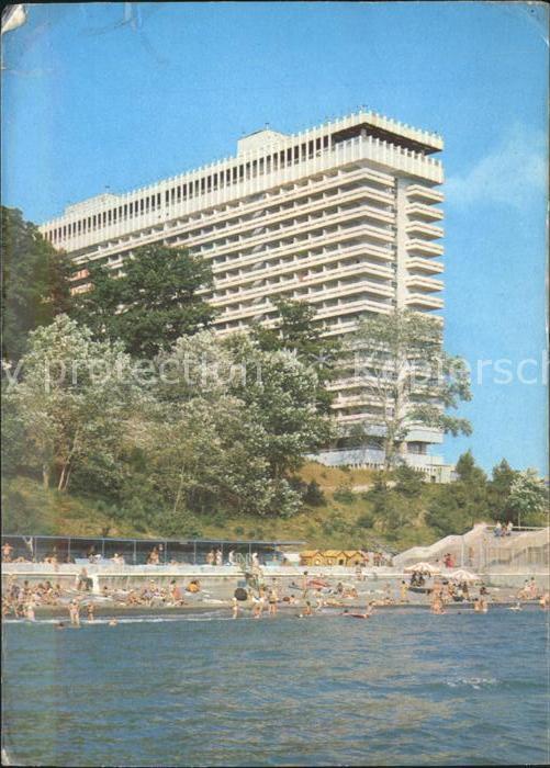 old postcard Sotschi Hotel Schemtschuschina postalisch gelaufen Ganzsache (eingedruckte Briefmarke) Erhaltung siehe scans