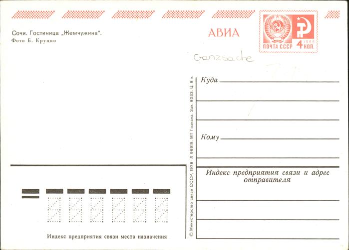 Sotschi Hotel Strand postalisch nicht gelaufen Ganzsache (eingedruckte Briefmarke) Erhaltung siehe scans