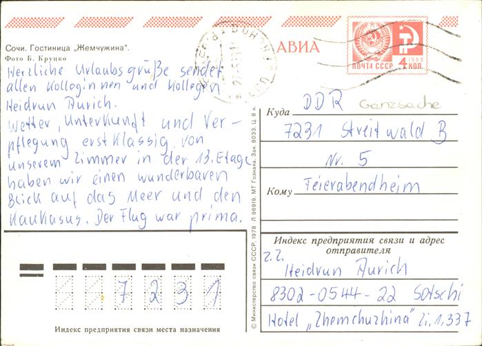 old postcard Sotschi Hotel Strand postalisch gelaufen