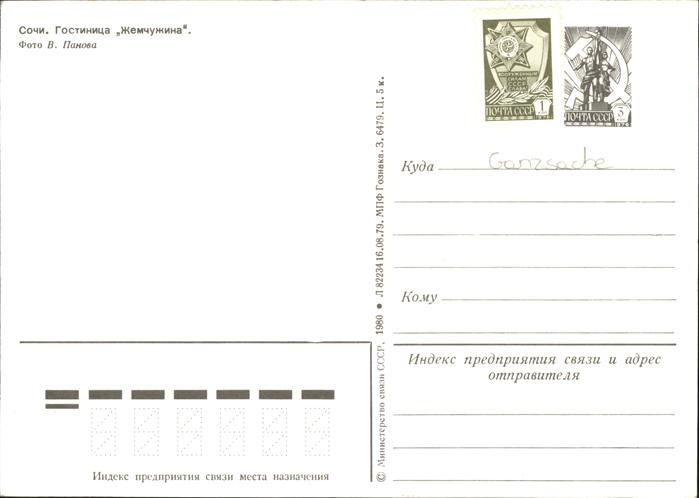 Sotschi Hotel Strand postalisch nicht gelaufen Ganzsache (eingedruckte Briefmarke) Erhaltung siehe scans