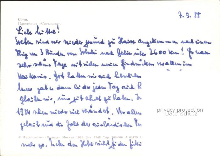 Sotschi Hotel Swetlana postalisch nicht gelaufen Erhaltung siehe scans
