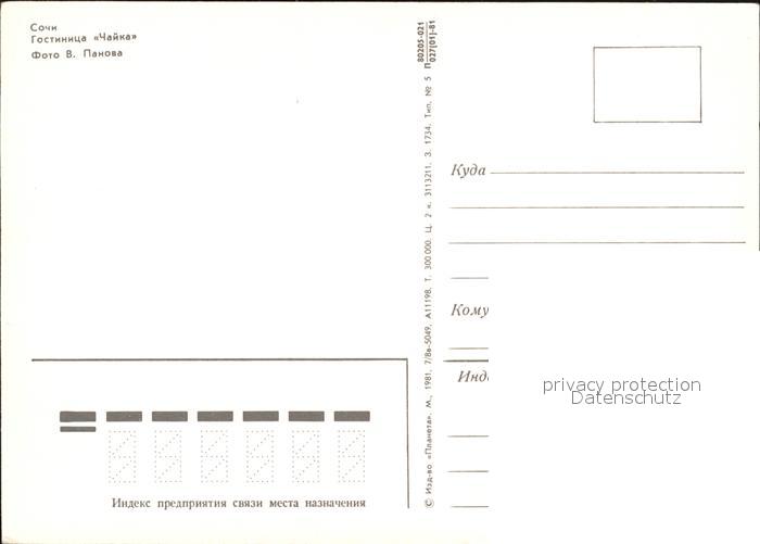 Sotschi Hotel Tschajka postalisch nicht gelaufen Erhaltung siehe scans [NatalD47 kt111box]