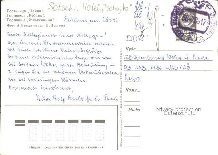old postcard Sotschi Hotel Tschajka postalisch gelaufen Ganzsache (eingedruckte Briefmarke) Erhaltung siehe scans